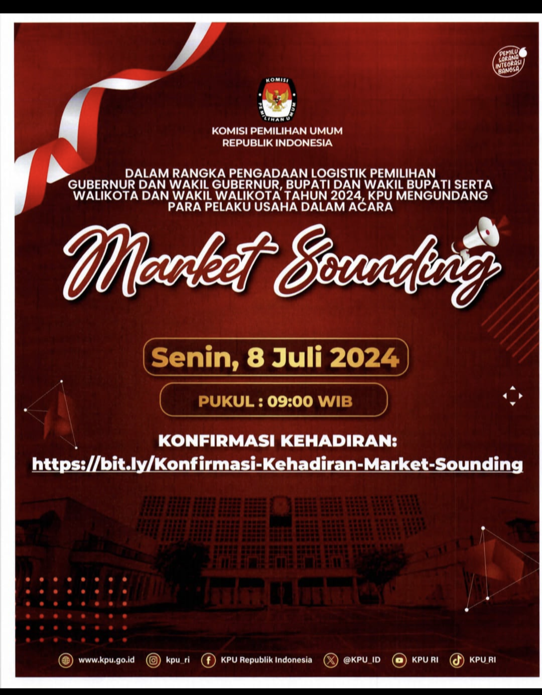 mengundang Bapak/Ibu para pelaku usaha mengikuti acara "market sounding" secara luring/daring, dengan mengisi tautan konfirmasi kehadiran paling lambat tanggal 7 juli 2024