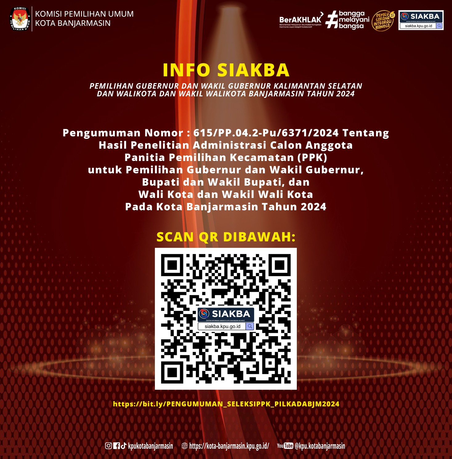 hai #temanpemilih, berikut pengumuman Hasil Penelitian Administrasi Calon Anggota Panitia Pemilihan Kecamatan untuk Pemilihan Gubernur dan Wakil Gubernur, Bupati dan Wakil Bupati, dan Wali Kota Dan Wakil Wali Kota Pada Kota Banjarmasin Tahun 2024 silahkan cek disini