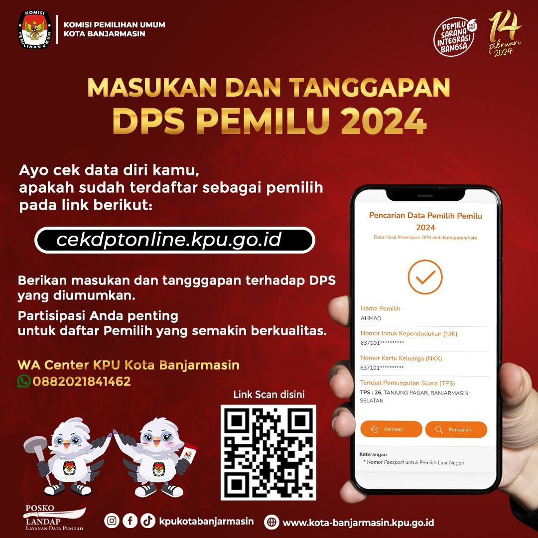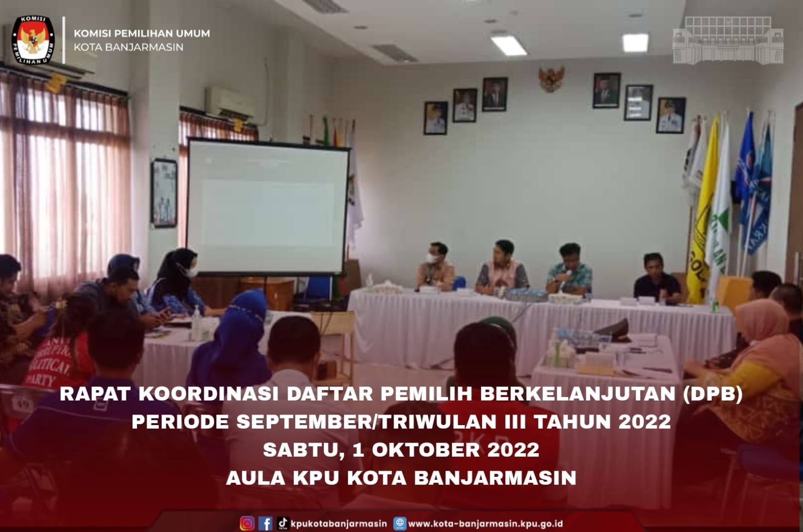 Hai #TemanPemilih, KPU Kota Banjarmasin menggelar Uji Publik Rancangan Penataan Daerah Pemilihan (Dapil) dan Alokasi Kursi Anggota Dewan Perwakilan Rakyat Daerah (DPRD) Kota Banjarmasin mulai hari Rabu 14 Desember sampai dengan 16 Desember 2022 dilaksanakan selama 3 (tiga) hari.