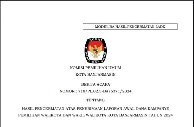 Berikut Hasil Penelitian Persyaratan Administrasi Pasangan Calon Walikota dan Wakil Walikota Banjarmasin Tahun 2024